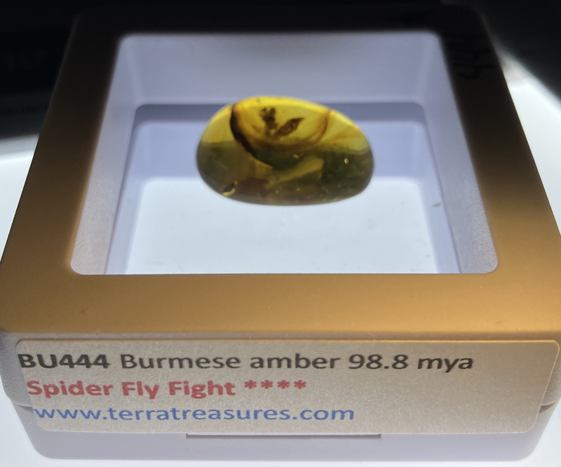 We have donated many hundreds of amber specimens to museums in the United States and have several dozen new species of insects in amber named after us. We have examined several thousand specimens of rough Burmese amber and have prepped many new Burmese fossil amber specimens. We have traveled to Europe with colleagues to examine unusual spectacular Dominican Amber specimens in private collections and we consider the amber curators of the museums in Santo Domingo, Puerto Plata and New York City our friends. Exploring for and collecting amber along with the examination and research of amber is our passion.