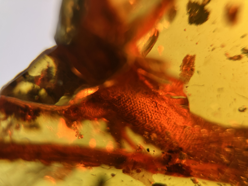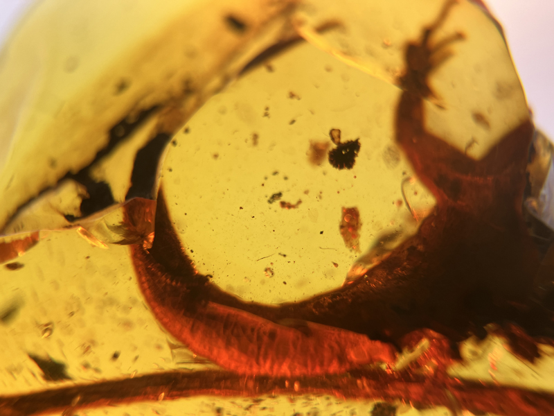 Burmese Amber (Burmite) is from northern Myanmar, it is the only Cretaceous amber deposit in the world that is exploited commercially, as well as the first to have been studied scientifically. Burmite is 98.8 million years old and has been used primarily in carvings for at least two millennia by Chinese peoples. The age of 98.8 million years establishes an earliest Cenomanian age for the fossilized inclusions. The age also indicates that a volcanic eruption occurred at 98.8 million years ago in the vicinity of the Hukawng Valley.