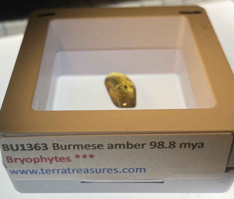 Burmese Amber (Burmite) is from northern Myanmar, it is the only Cretaceous amber deposit in the world that is exploited commercially, as well as the first to have been studied scientifically. Burmite is 98.8 million years old and has been used primarily in carvings for at least two millennia by Chinese peoples. The age of 98.8 million years establishes an earliest Cenomanian age for the fossilized inclusions. The age also indicates that a volcanic eruption occurred at 98.8 million years ago in the vicinity of the Hukawng Valley.