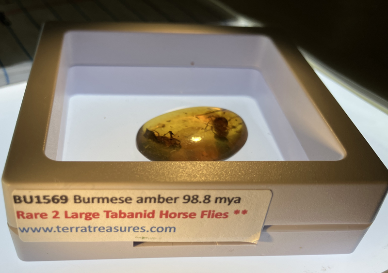 We have donated many hundreds of amber specimens to museums in the United States and have several dozen new species of insects in amber named after us. We have examined several thousand specimens of rough Burmese amber and have prepped many new Burmese fossil amber specimens. We have traveled to Europe with colleagues to examine unusual spectacular Dominican Amber specimens in private collections and we consider the amber curators of the museums in Santo Domingo, Puerto Plata and New York City our friends. Exploring for and collecting amber along with the examination and research of amber is our passion.