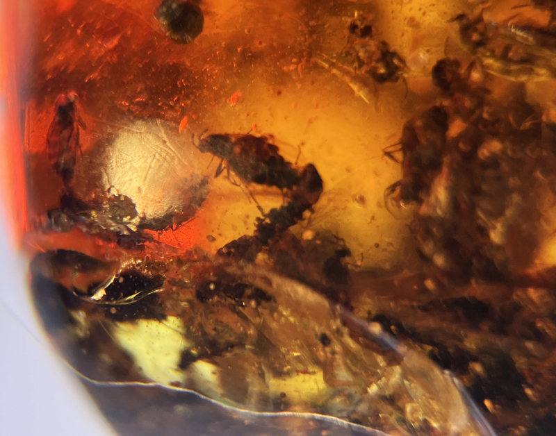 We have donated many hundreds of amber specimens to museums in the United States and have several dozen new species of insects in amber named after us. We have examined several thousand specimens of rough Burmese amber and have prepped many new Burmese fossil amber specimens. We have traveled to Europe with colleagues to examine unusual spectacular Dominican Amber specimens in private collections and we consider the amber curators of the museums in Santo Domingo, Puerto Plata and New York City our friends. Exploring for and collecting amber along with the examination and research of amber is our passion.