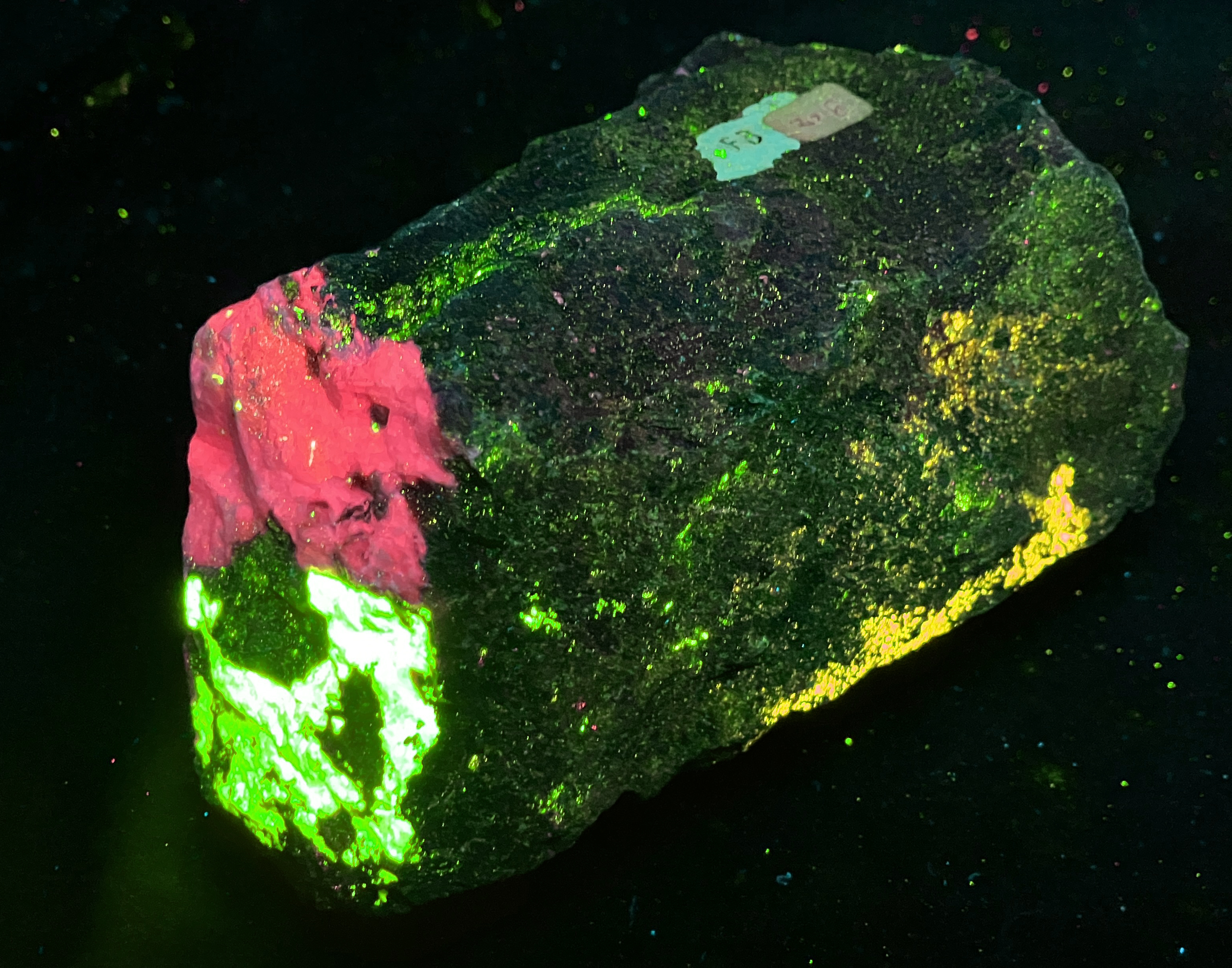 This locality was a mineral dump near the end of Mill Street and abutting the ore railroad tracks entering theformer Palmer #2 Mill. The "Mill Site dump" was known for many years previous to the apartment building construction and supervised field trips were permitted in the mid-1980s. During the construction of the apartment building, the dump was sieved using a 5 x 5 cm grid shaker and all of the mineral specimens of "usable" size were trucked to the Franklin Mineral Museum property, where these minerals are now being added to the collecting site where museum members and visitors are receiving controlled access to the minerals, thus ensuring that fresh minerals are available to mineral collectors and by extension adding to the long-term vitality of the Franklin Mineral Museum's facilities.