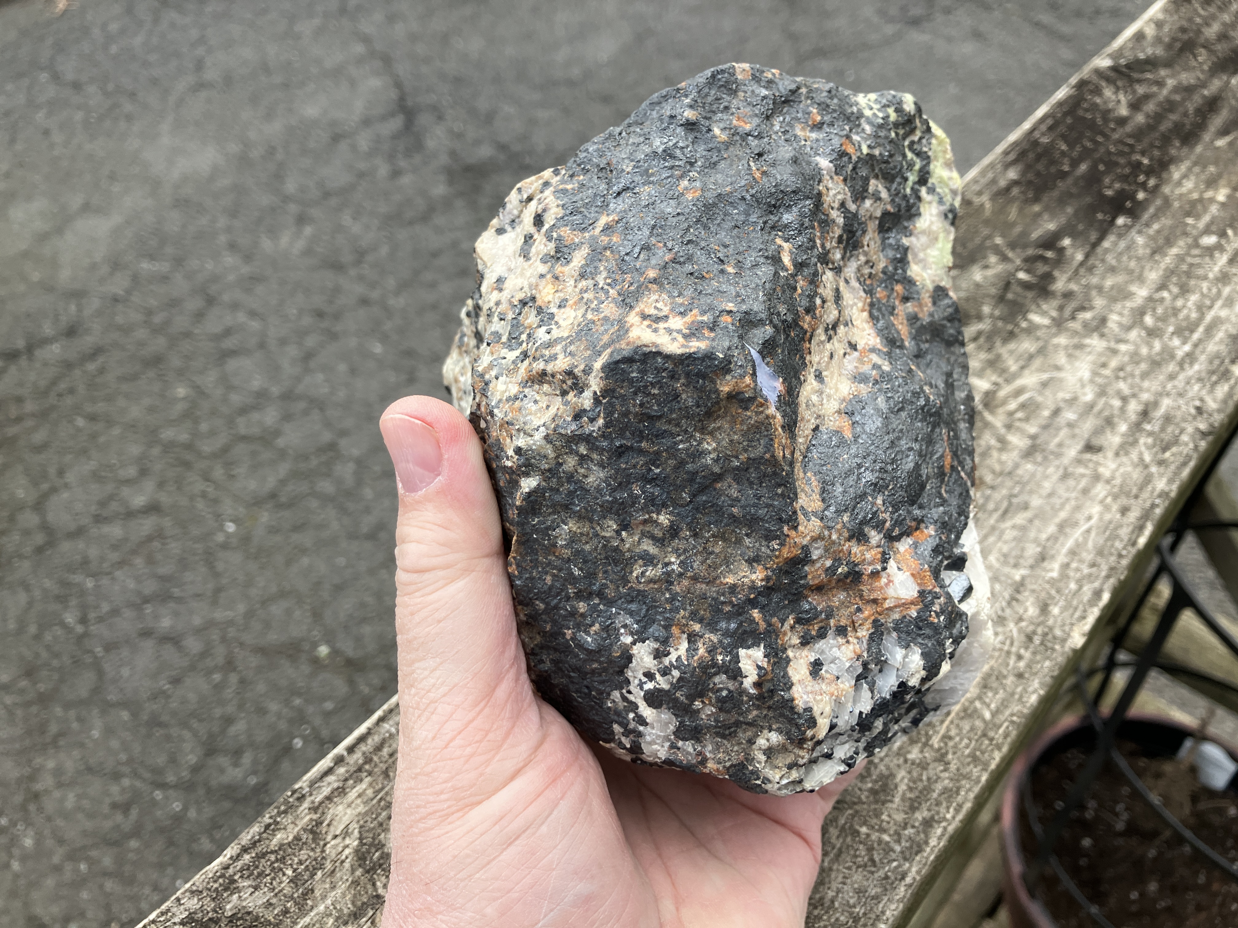 The Furnace mine which was adjacent to the actual furnace, was a 120+ foot vertical shaft just under Franklin Falls. Other rare minerals include esperite, clinohedrite, hardystonite, and others. There are scores of minerals found only here, such as johnbaumite (an arsenous apatite), mcgovernite, etc. Sterling Hill, a very similar zinc orebody, is located a few miles away in Ogdensburg.