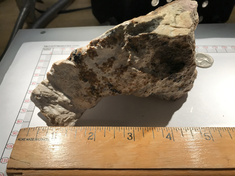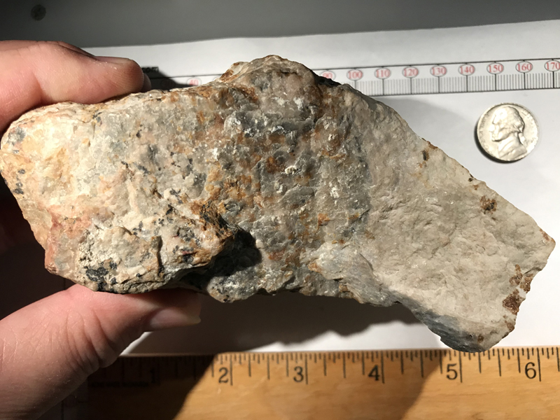 The historical lore of the Mill Site Dump is that the final approach to the Palmer #2 Mill (built in 1898) was over a trestle about 8-12 meters from the rails to ground level. Allegedly, the trestle shifted and was perceived as unstable and management ordered a rapid dumping of rock to bring the fill level up to the railroad tracks and thus avert a long term mill shutdown. Lore further suggests that the ore picking table in the Mill was reversed so that any rock in the Mill was diverted back to the trestle supports. Further shipments of blasted rock of all kinds, both dump-grade and ore-grade, were taken from the Parker Shaft and elsewhere to fill the entire depression up to track level. The presence of margarosanite, hardystonite, and other desirable species that have been recovered from Mill Site rock supports the folklore."